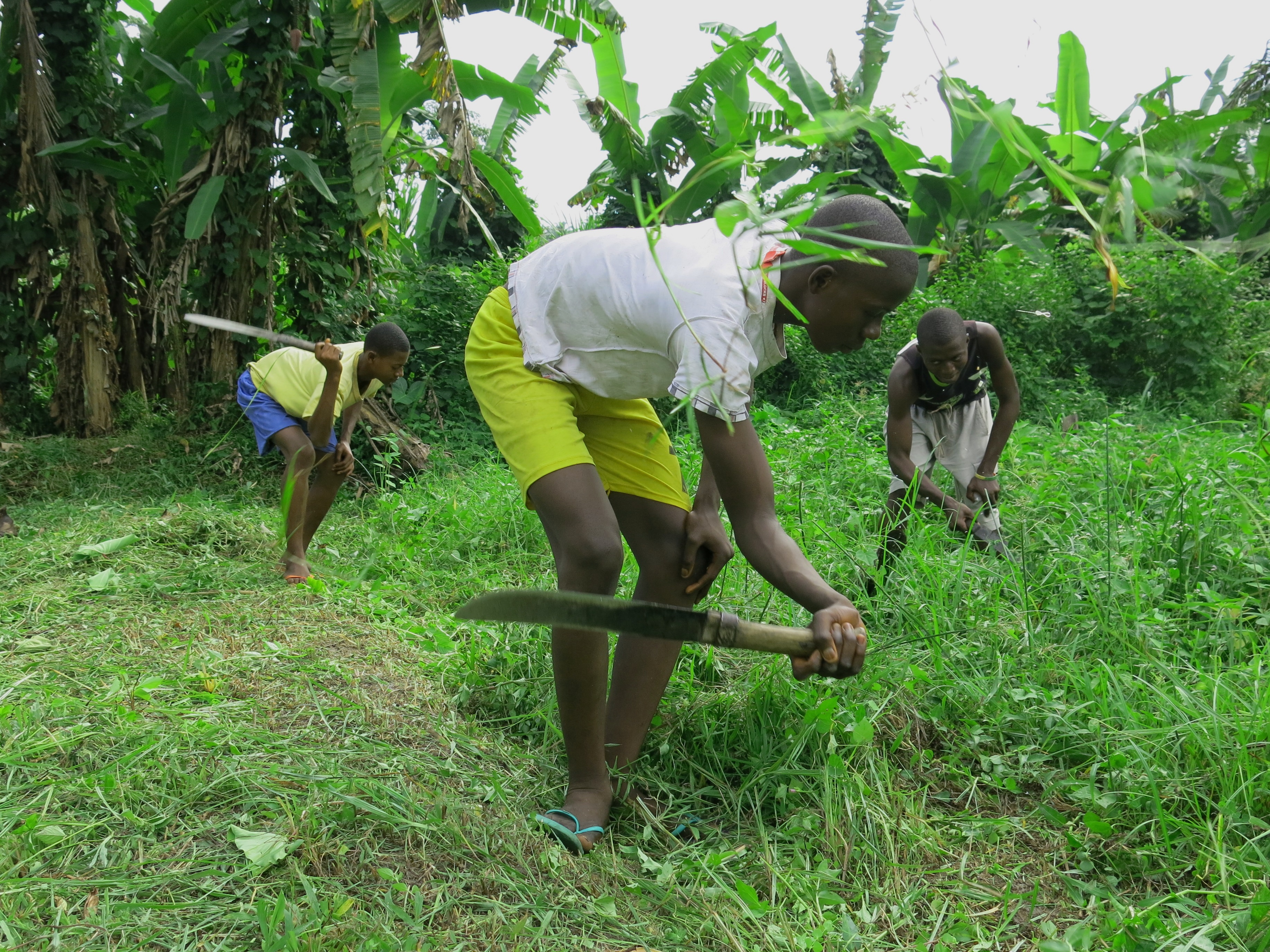 Eineinhalb Stunden täglich schuftet Adrien Butsianga Butsianga (Mitte) mit seinen Mitschülern im Garten des Internats