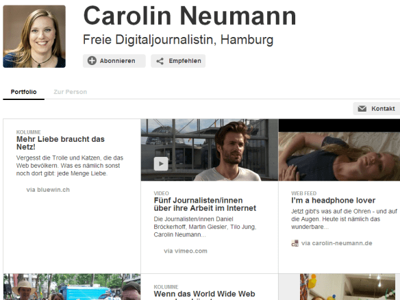 Jetzt mal ehrlich: Wer interessiert sich eigentlich dafür, ob das Volontariat jetzt im Jahr 1993 absolviert wurde? Oder doch erst 1995? Sind die ganzen Infos zu Person nicht zweitrangig? Bei Torial ist das so. Als erstes bekommt man Reportagen zu lesen, Podcasts zu hören, Youtube-Clips zu gucken oder Tweets gestreamt – alles ordentlich in Kästchen aneinandergereiht. Die Arbeit steht im Mittelpunkt. Und nicht die Selbstinszenierung. Wer überzeugt ist, kann immer noch in den Angaben „zur Person“ stöbern, den Lebenslauf schmökern, Netzwerke abchecken oder sich über etliche Social-Media-Kanäle verknüpfen.