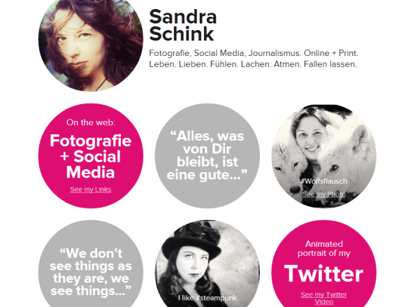 Zugegeben, Vizify ist etwas für experimentierfreudige Social-Media-Maniacs. Ohne die Einbindung diverser Netzwerke läuft nichts. Doch wer den Dienst brav mit Daten füttert, muss sich nur noch zurücklehnen. Die Spuren, die man im Netz hinterlassen hat, saugt Vizify auf und fügt sie wie von Zauberhand zu einem Bild. In bunten Kreisen, versteht sich. Die Stationen des Lebenslaufs formen sich zu einer schmucken Balkengrafik, besuchte Orte zu einem Netz auf einer Karte und abgeschickte Tweets zu einem Video-Porträt.