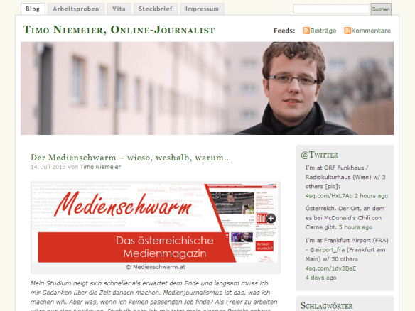 Aber: Schade bloß, wenn man beruflich seitenweise Papier voll schreibt, noch nichts von Vimeo gehört hat und Twitter den Online-Kollegen überlässt. Aber warum sollte es nicht auch mit einer minimalistischen Ausstattung gehen? Und mit ein paar Wochen Verzögerung landen ja selbst ZEIT-Dossiers online.